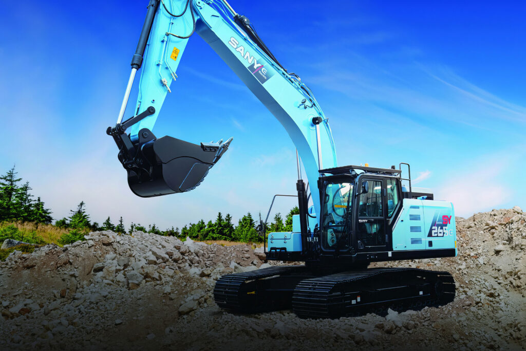SANY SY265E er en helelektrisk beltegraver i 28-tonnsklassen, drevet av et 600 kWh batteri og en spesialtilpasset permanent magnet synkronmotor på 150 kW. Maskinen er bygget for tunge oppgaver med en skuffegravekraft på 138 kN og armgravekraft på 103 kN. Med en gravedybde på 6 705 mm og en graverekkevidde på over 10 meter er SY265E et fullverdig alternativ til dieseldrevne maskiner i samme klasse.